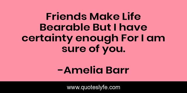 This page presents the quote "Friends Make Life Bearable But I have certainty enough For I am sure of you.". Author of this quote is Amelia Barr. .