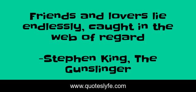 This page presents the quote "Friends and lovers lie endlessly, caught in the web of regard". Author of this quote is Stephen King, The Gunslinger. This quote is about relationships, regard, lying,.