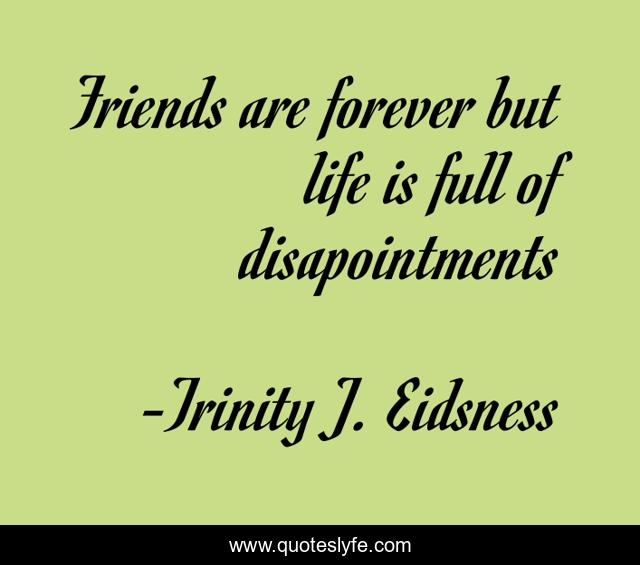 This page presents the quote "Friends are forever but life is full of disapointments". Author of this quote is Trinity J. Eidsness. This quote is about betrayal, disloyal, friends,.