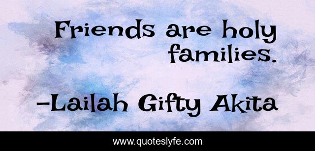 This page presents the quote "Friends are holy families.". Author of this quote is Lailah Gifty Akita. This quote is about families, soulmate, friends, compassions,.