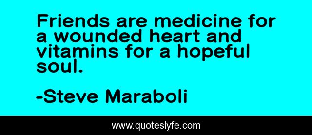 This page presents the quote "Friends are medicine for a wounded heart and vitamins for a hopeful soul.". Author of this quote is Steve Maraboli. This quote is about heart, vitamins, friendship, soul, inspirational, medicine, enthusiasm, friends, hope,.