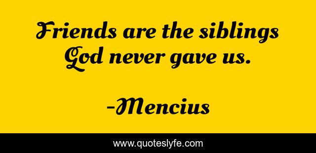 "Mencius Quotes." Quoteslyfe.com, 2025. Mon. 08 Dec. 2025. <https://www.quoteslyfe.com/quote/Friends-are-the-siblings-God-never-gave-306241>.