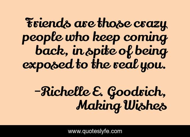 "Richelle E. Goodrich, Making Wishes Quotes." Quoteslyfe.com, 2025. Tue. 09 Dec. 2025. <https://www.quoteslyfe.com/quote/Friends-are-those-crazy-people-who-keep-127030>.