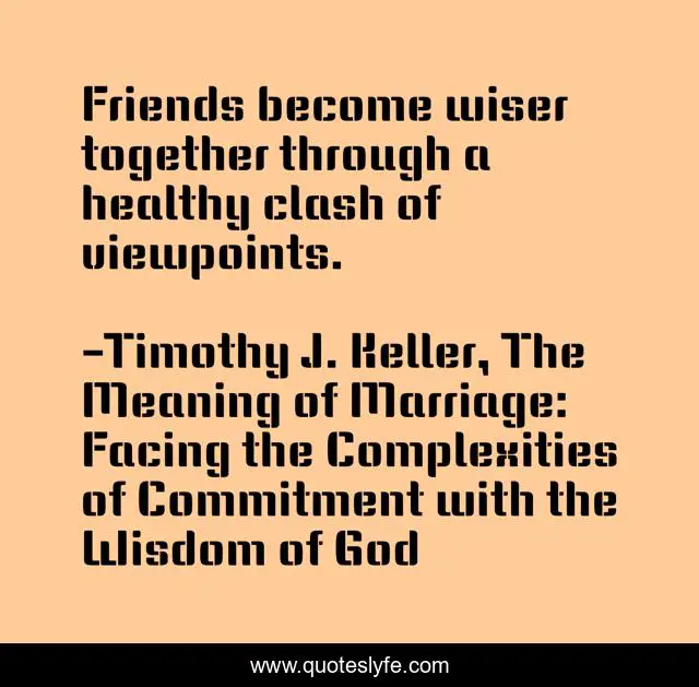 "Timothy J. Keller, The Meaning of Marriage: Facing the Complexities of Commitment with the Wisdom of God Quotes." Quoteslyfe.com, 2025. Tue. 09 Dec. 2025. <https://www.quoteslyfe.com/quote/Friends-become-wiser-together-through-a-healthy-127214>.