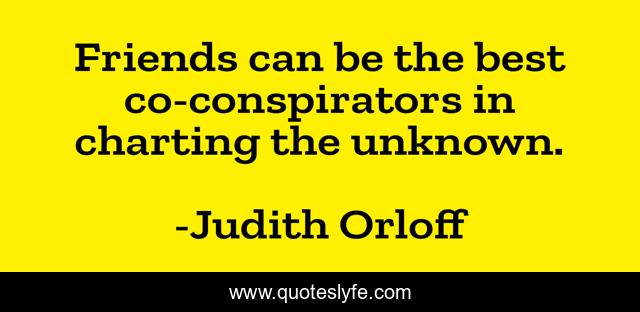 This page presents the quote "Friends can be the best co-conspirators in charting the unknown.". Author of this quote is Judith Orloff. This quote is about unknown, friends,.