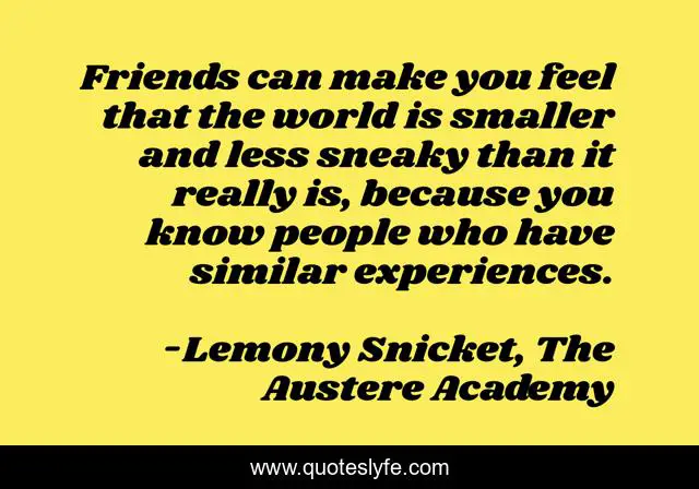 "Lemony Snicket, The Austere Academy Quotes." Quoteslyfe.com, 2025. Fri. 05 Dec. 2025. <https://www.quoteslyfe.com/quote/Friends-can-make-you-feel-that-the-4630>.