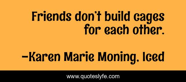 This page presents the quote "Friends don’t build cages for each other.". Author of this quote is Karen Marie Moning, Iced. .
