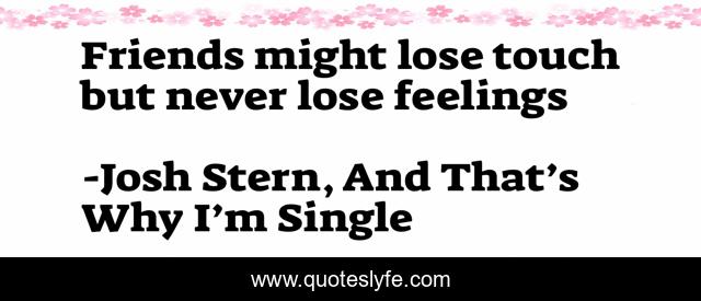"Josh Stern, And That’s Why I’m Single Quotes." Quoteslyfe.com, 2025. Mon. 08 Dec. 2025. <https://www.quoteslyfe.com/quote/Friends-might-lose-touch-but-never-lose-126602>.