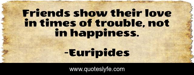 This page presents the quote "Friends show their love in times of trouble, not in happiness.". Author of this quote is Euripides. This quote is about friendship, happiness,.