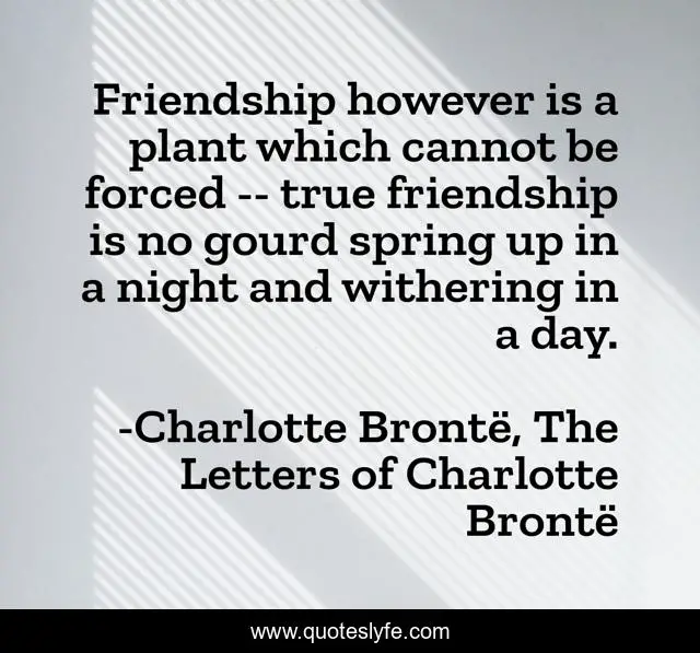 "Charlotte Brontë, The Letters of Charlotte Brontë Quotes." Quoteslyfe.com, 2025. Sat. 06 Dec. 2025. <https://www.quoteslyfe.com/quote/Friendship-however-is-a-plant-which-cannot-50121>.
