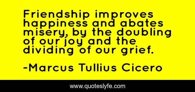 "Marcus Tullius Cicero Quotes." Quoteslyfe.com, 2025. Mon. 08 Dec. 2025. <https://www.quoteslyfe.com/quote/Friendship-improves-happiness-and-abates-misery-by-297188>.