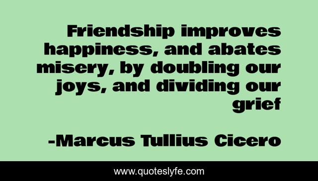 "Marcus Tullius Cicero Quotes." Quoteslyfe.com, 2025. Fri. 05 Dec. 2025. <https://www.quoteslyfe.com/quote/Friendship-improves-happiness-and-abates-misery-by-50054>.