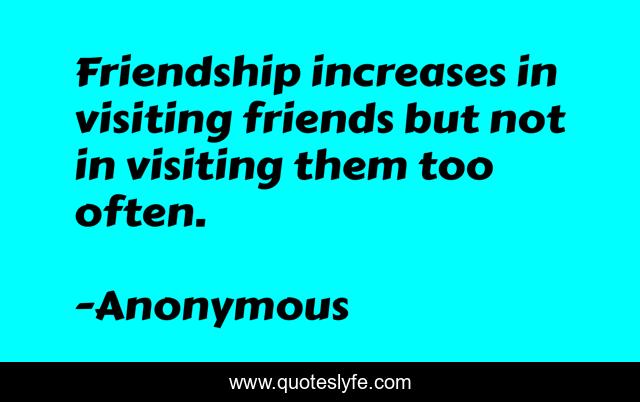 This page presents the quote "Friendship increases in visiting friends but not in visiting them too often.". Author of this quote is Anonymous. .