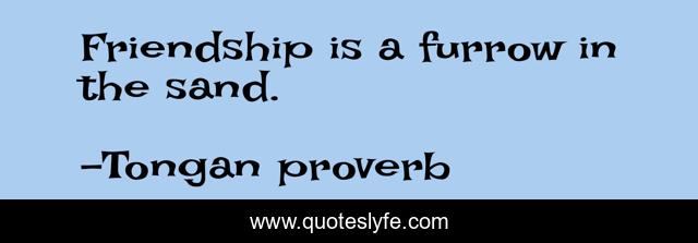 This page presents the quote "Friendship is a furrow in the sand.". Author of this quote is Tongan proverb. .