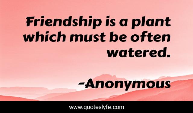 This page presents the quote "Friendship is a plant which must be often watered.". Author of this quote is Anonymous. .