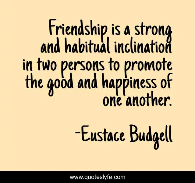This page presents the quote "Friendship is a strong and habitual inclination in two persons to promote the good and happiness of one another.". Author of this quote is Eustace Budgell. .