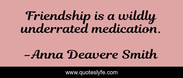 "Anna Deavere Smith Quotes." Quoteslyfe.com, 2025. Mon. 08 Dec. 2025. <https://www.quoteslyfe.com/quote/Friendship-is-a-wildly-underrated-medication-318972>.