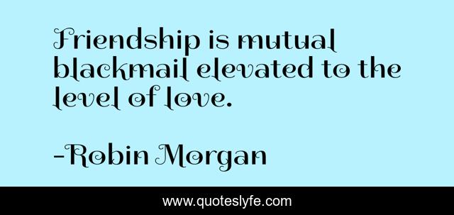 "Robin Morgan Quotes." Quoteslyfe.com, 2025. Sun. 07 Dec. 2025. <https://www.quoteslyfe.com/quote/Friendship-is-mutual-blackmail-elevated-to-the-265947>.