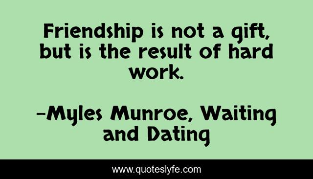 This page presents the quote "Friendship is not a gift, but is the result of hard work.". Author of this quote is Myles Munroe, Waiting and Dating. .