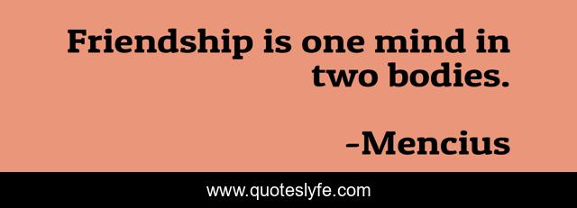 This page presents the quote "Friendship is one mind in two bodies.". Author of this quote is Mencius. .