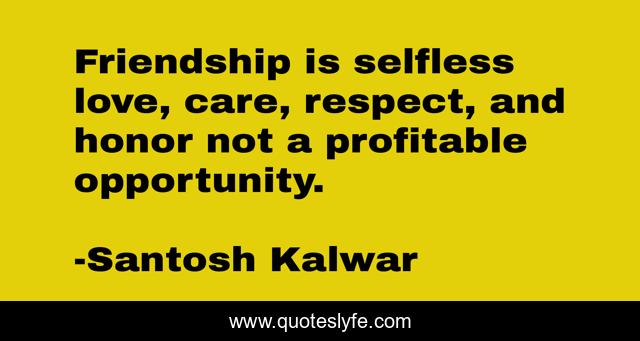 This page presents the quote "Friendship is selfless love, care, respect, and honor not a profitable opportunity.". Author of this quote is Santosh Kalwar. This quote is about love, friendship, respect, opportunity, affection, care,.