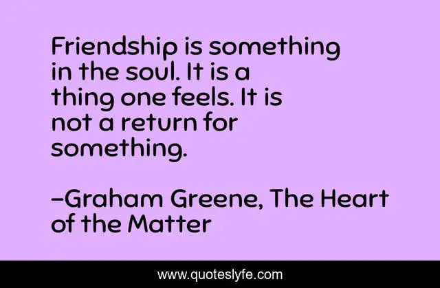 "Graham Greene, The Heart of the Matter Quotes." Quoteslyfe.com, 2025. Sun. 07 Dec. 2025. <https://www.quoteslyfe.com/quote/Friendship-is-something-in-the-soul-It-50200>.