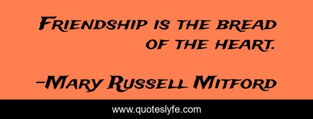 This page presents the quote "Friendship is the bread of the heart.". Author of this quote is Mary Russell Mitford. .