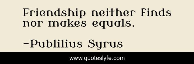 This page presents the quote "Friendship neither finds nor makes equals.". Author of this quote is Publilius Syrus. .