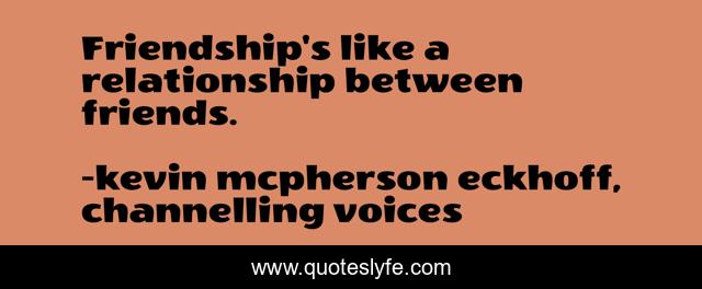 "kevin mcpherson eckhoff, channelling voices Quotes." Quoteslyfe.com, 2025. Mon. 08 Dec. 2025. <https://www.quoteslyfe.com/quote/Friendship-s-like-a-relationship-between-friends-51015>.