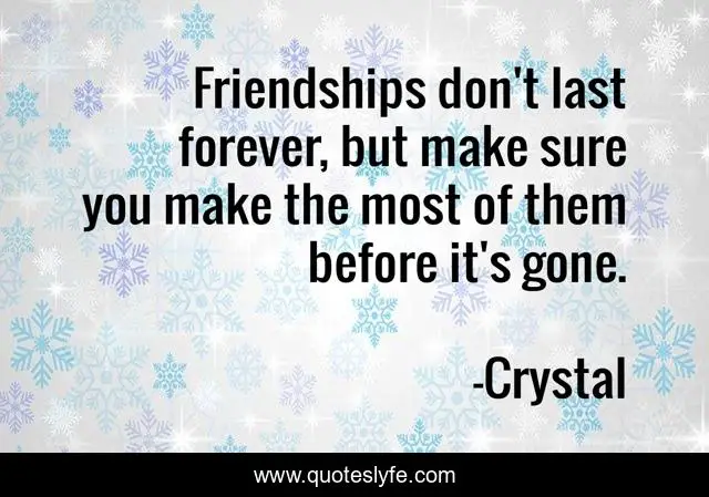 "Crystal Quotes." Quoteslyfe.com, 2025. Fri. 05 Dec. 2025. <https://www.quoteslyfe.com/quote/Friendships-don-t-last-forever-but-make-94480>.