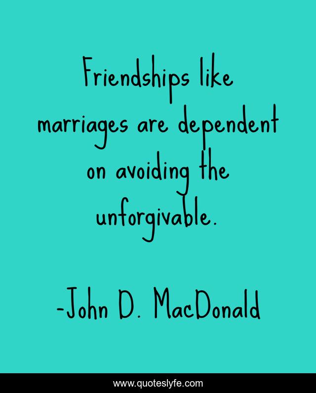 This page presents the quote "Friendships like marriages are dependent on avoiding the unforgivable.". Author of this quote is John D. MacDonald. .