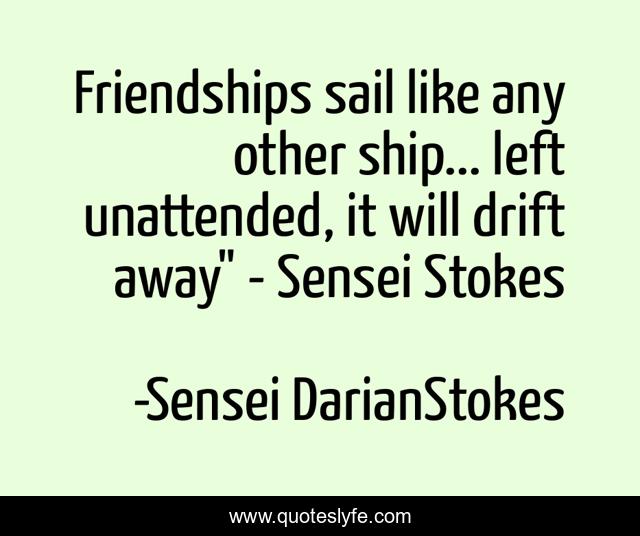 This page presents the quote "Friendships sail like any other ship... left unattended, it will drift away" - Sensei Stokes". Author of this quote is Sensei DarianStokes. .