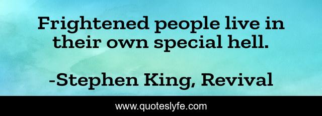 This page presents the quote "Frightened people live in their own special hell.". Author of this quote is Stephen King, Revival. This quote is about anxiety, fright, angst, sadness, hell, fear, frightened, worry,.