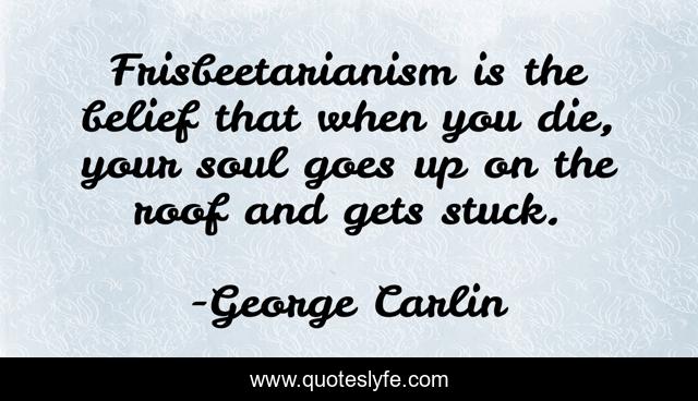 This page presents the quote "Frisbeetarianism is the belief that when you die, your soul goes up on the roof and gets stuck.". Author of this quote is George Carlin. This quote is about soul, belief,.