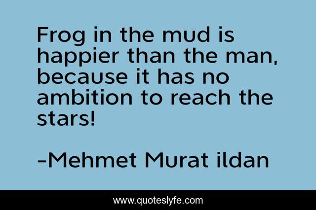 This page presents the quote "Frog in the mud is happier than the man, because it has no ambition to reach the stars!". Author of this quote is Mehmet Murat ildan. .