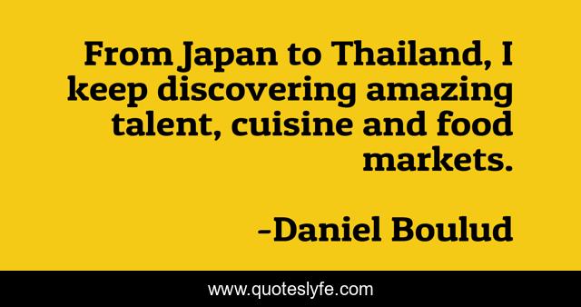 This page presents the quote "From Japan to Thailand, I keep discovering amazing talent, cuisine and food markets.". Author of this quote is Daniel Boulud. This quote is about japan, amazing, talent,.