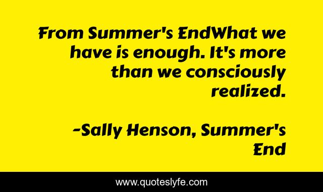 This page presents the quote "From Summer's EndWhat we have is enough. It's more than we consciously realized.". Author of this quote is Sally Henson, Summer's End. This quote is about summer, high-school, series, young-adult-romance, teen-romance, young-adult-series, clean, series-romance, summer-s-end,.