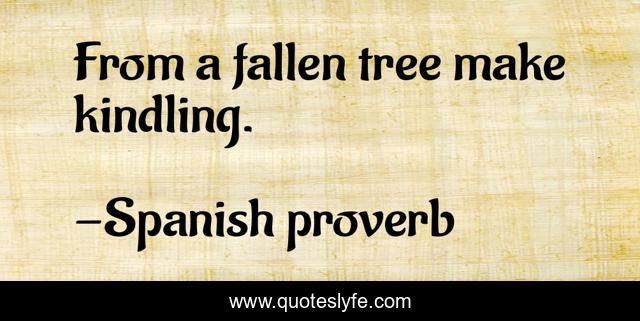 This page presents the quote "From a fallen tree make kindling.". Author of this quote is Spanish proverb. This quote is about victories, worthy,.
