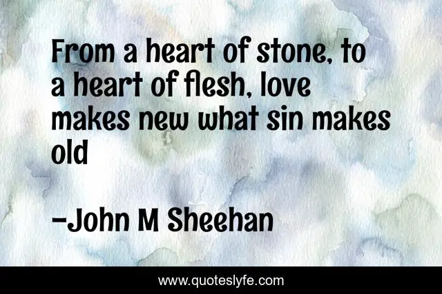 This page presents the quote "From a heart of stone, to a heart of flesh, love makes new what sin makes old". Author of this quote is John M Sheehan. This quote is about hopeful-and-encouraging, love, sin, affection,.