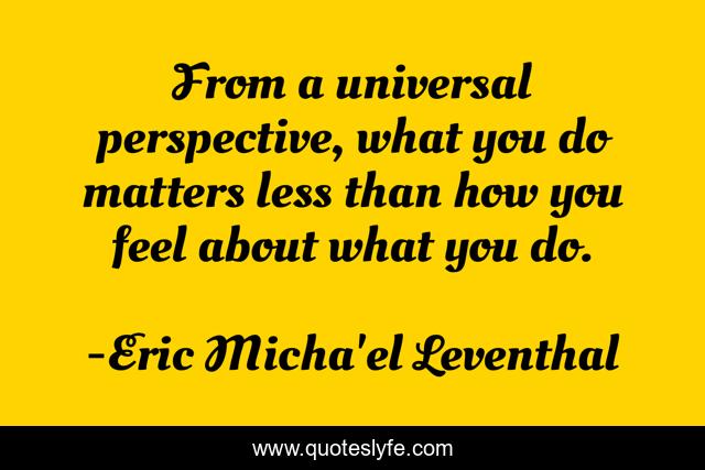 "Eric Micha'el Leventhal Quotes." Quoteslyfe.com, 2025. Fri. 05 Dec. 2025. <https://www.quoteslyfe.com/quote/From-a-universal-perspective-what-you-do-169947>.