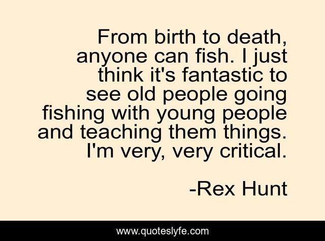 This page presents the quote "From birth to death, anyone can fish. I just think it's fantastic to see old people going fishing with young people and teaching them things. I'm very, very critical.". Author of this quote is Rex Hunt. This quote is about fish, fishing, people,.