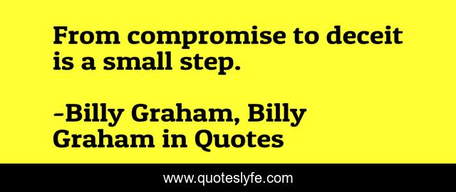 This page presents the quote "From compromise to deceit is a small step.". Author of this quote is Billy Graham, Billy Graham in Quotes. This quote is about deceit, compromise, billy-graham,.