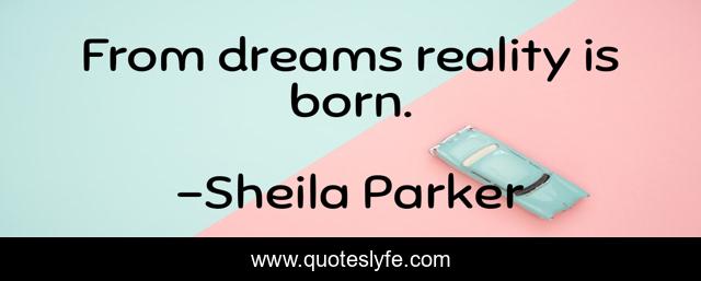 This page presents the quote "From dreams reality is born.". Author of this quote is Sheila Parker. This quote is about dreams, reality,.