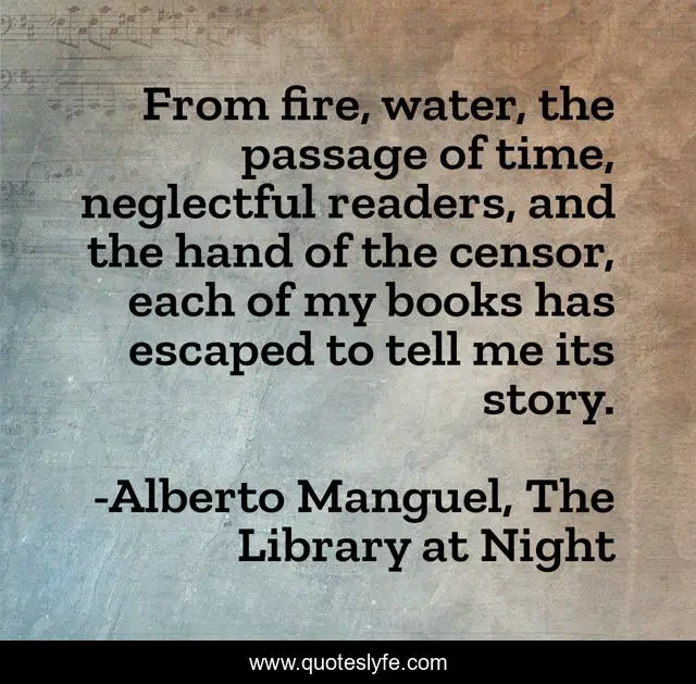 "Alberto Manguel, The Library at Night Quotes." Quoteslyfe.com, 2025. Mon. 08 Dec. 2025. <https://www.quoteslyfe.com/quote/From-fire-water-the-passage-of-time-43250>.
