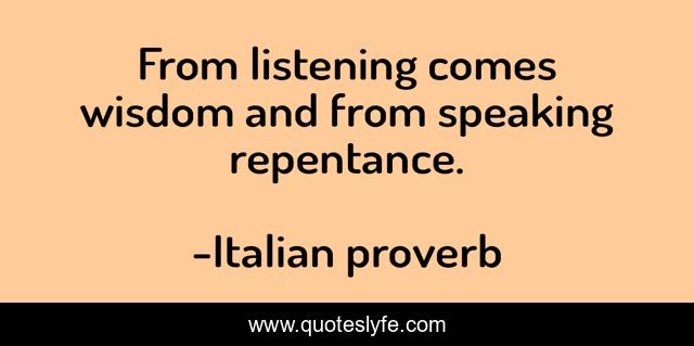 This page presents the quote "From listening comes wisdom and from speaking repentance.". Author of this quote is Italian proverb. .