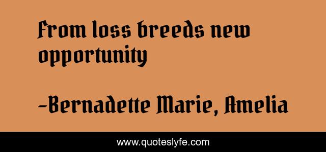 "Bernadette Marie, Amelia Quotes." Quoteslyfe.com, 2025. Mon. 08 Dec. 2025. <https://www.quoteslyfe.com/quote/From-loss-breeds-new-opportunity-122942>.