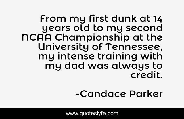 This page presents the quote "From my first dunk at 14 years old to my second NCAA Championship at the University of Tennessee, my intense training with my dad was always to credit.". Author of this quote is Candace Parker. This quote is about credit, training, years,.