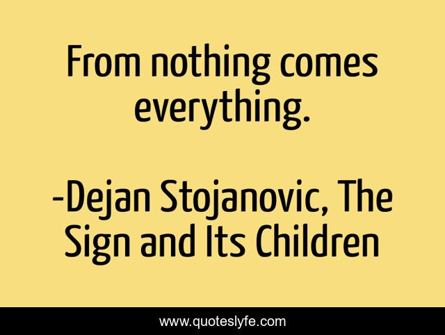 "Dejan Stojanovic, The Sign and Its Children Quotes." Quoteslyfe.com, 2025. Sat. 06 Dec. 2025. <https://www.quoteslyfe.com/quote/From-nothing-comes-everything-112320>.