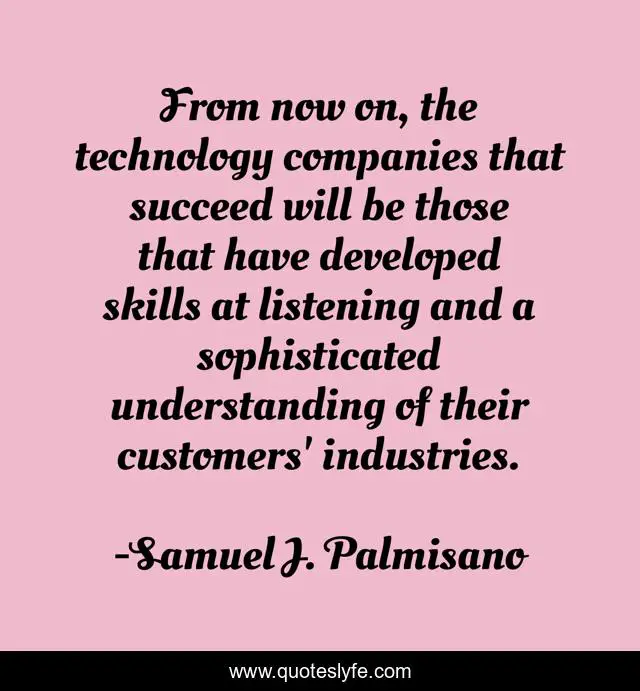 This page presents the quote "From now on, the technology companies that succeed will be those that have developed skills at listening and a sophisticated understanding of their customers' industries.". Author of this quote is Samuel J. Palmisano. This quote is about listening, understanding,.