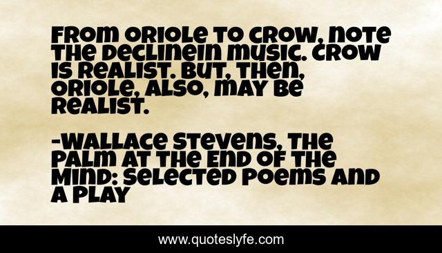 This page presents the quote "From oriole to crow, note the declineIn music. Crow is realist. But, then, Oriole, also, may be realist.". Author of this quote is Wallace Stevens, The Palm at the End of the Mind: Selected Poems and a Play. .
